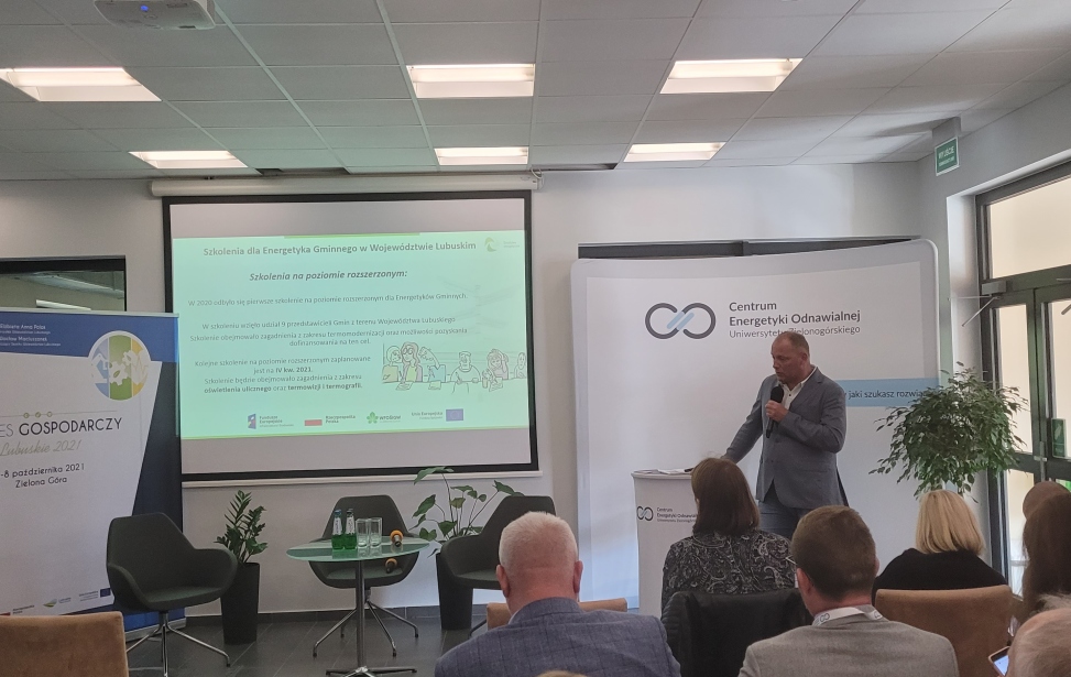 W dniu 7.10.2021 roku w Doradcy energetyczni z Województwa Lubuskiego wzięli udział w Lubuskim Forum Innowacji. Podczas spotkania, które odbyło się w Centrum Energetyki Odnawialnej w Sulechowie doradca Marcin Kostrzewa wygłosił prelekcję pt.: „Energetyk Gminny – case study”. Podczas wykładu poruszono m.in. kwestię dotyczącą przebiegu szkoleń dla Energetyków Gminnych w Województwie Lubuskim.