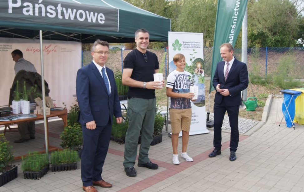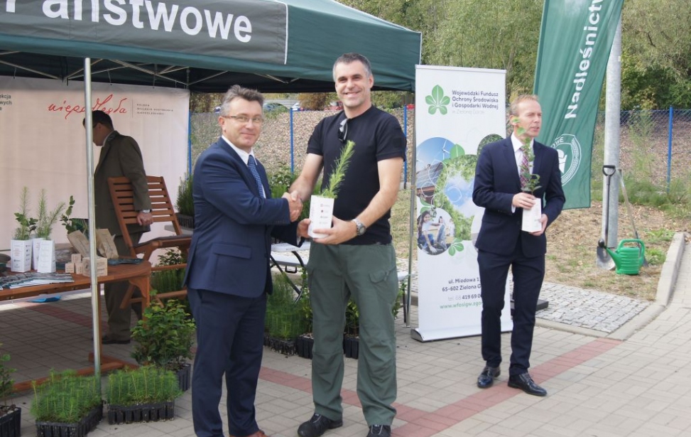 W dniu 9 września br. na parkingu w siedzibie funduszu przy ul. Miodowej 11 w Zielonej Górze, w zamian, m.in.  za 5 PET, 5 puszek, makulaturę i elektrośmieci rozdawaliśmy sadzonki buku, sosny i modrzewia. W tym dniu dotarło do nas około 150 uczestników, którym za odpady (makulaturę, PETY, baterie, elektrośmieci, puszki) wydaliśmy wspólnie z leśnikami 350 sadzonek. Uroczyście posadzono na terenie funduszu buka i modrzewia. Naszymi partnerami w tym przedsięwzięciu byli: Regionalna Dyrekcja Lasów Państwowych  w Zielonej Górze, Nadleśnictwo Babimost oraz Nadleśnictwo Sulechów.
