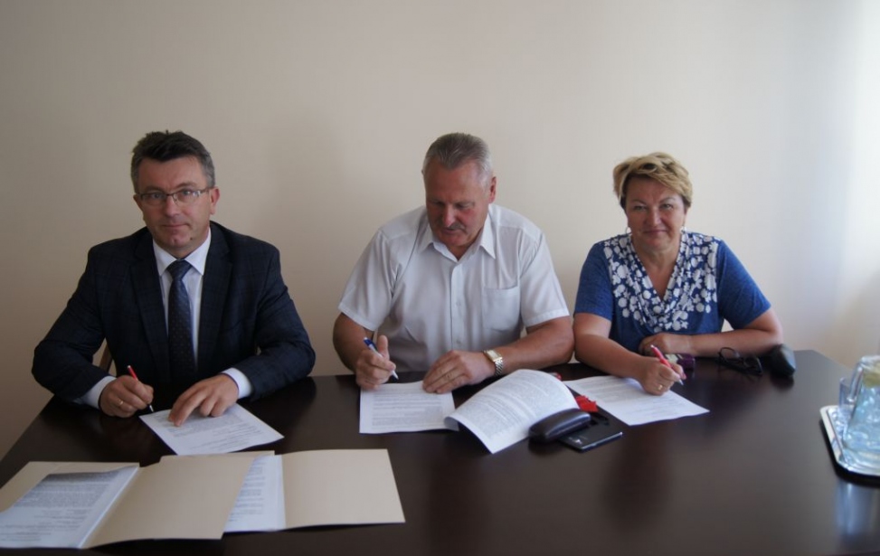 Umowy podpisali: Mariusz Herbut – Prezes WFOŚiGW oraz Czesław Kalbarczyk – Wójt Gminy Łagów przy kontrasygnacie Stefanii Hałas – Skarbnika Gminy Łagów.