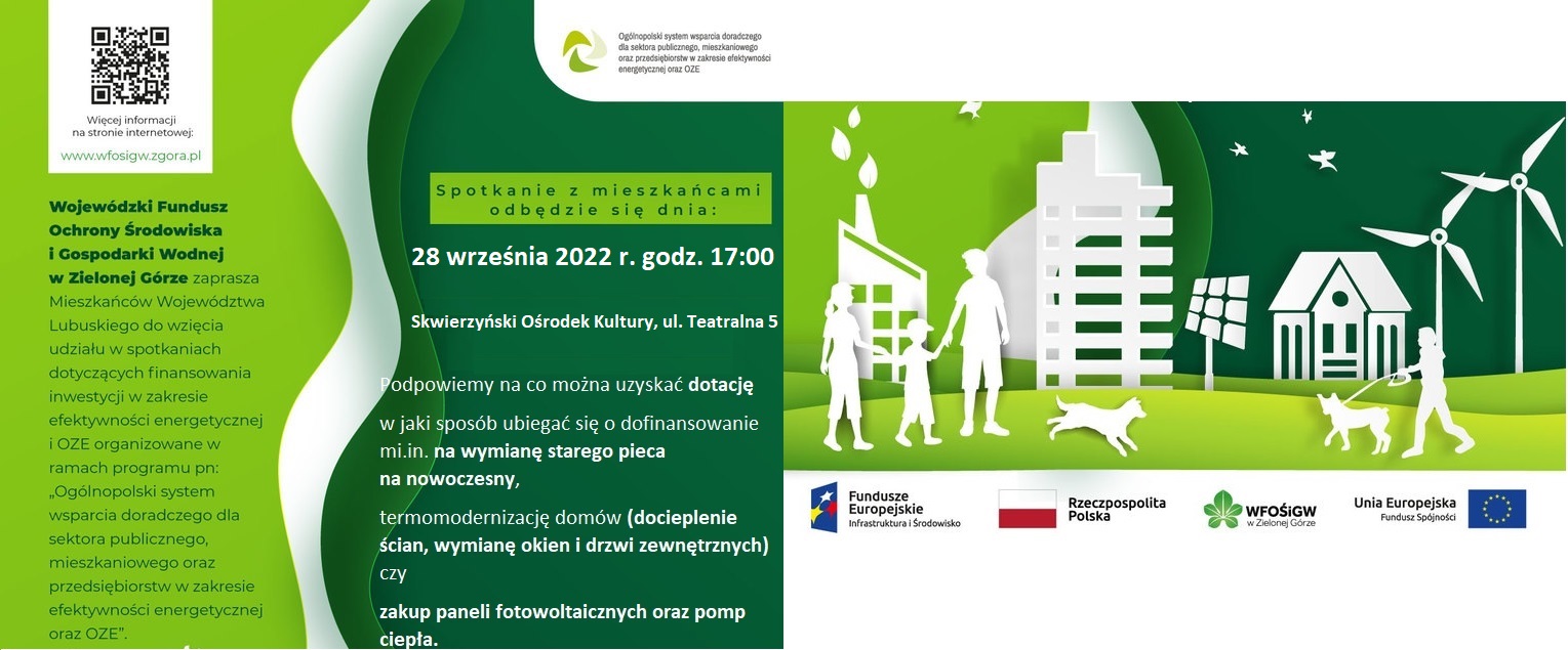 Wojewódzki Fundusz Ochrony Środowiska i Gospodarki Wodnej w Zielonej Górze serdecznie Państwa zaprasza na spotkanie dotyczące finansowania inwestycji z zakresu efektywności energetycznej i Odnawialnych Źródeł Energii