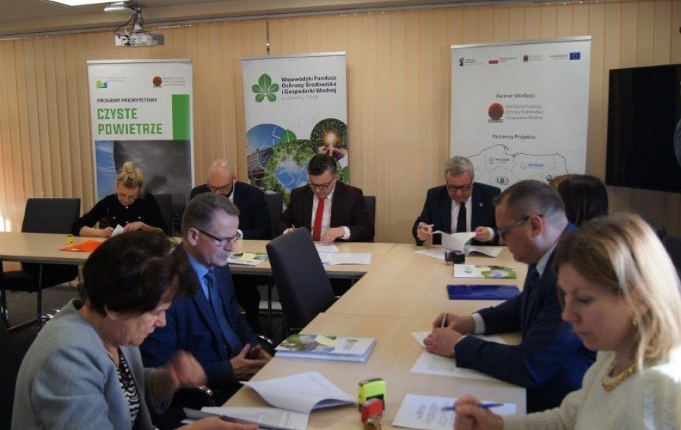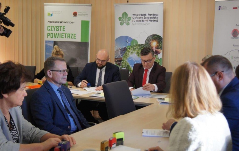 9 lutego br. w siedzibie Funduszu podpisane zostały kolejne umowy o dofinansowanie w ramach programu priorytetowego „Ciepłe Mieszkanie”. Do Programu przystąpiły Gminy: Bobrowice, Bytnica, Kargowa, Międzyrzecz i Miasto Nowa Sól. Umowy z ramienia WFOŚiGW w Zielonej Górze podpisał Prezes Zarządu – Mariusz Herbut, ze strony Gminy Bobrowice Wójt - Wojciech Wąchała, ze strony Gminy Bytnica Wójt - Sebastian Bartczak, ze strony Gminy Kargowa Burmistrz - Jerzy Fabiś, ze strony Gminy Międzyrzecz Burmistrz - Remigiusz Lorenz, ze strony Miasta Nowa Sól Prezydent - Jacek Milewski, przy kontrasygnacie skarbników. Gminy będą realizowały Program wymiany starych źródeł ciepła i termomodernizacji w budynkach mieszkalnych wielorodzinnych.