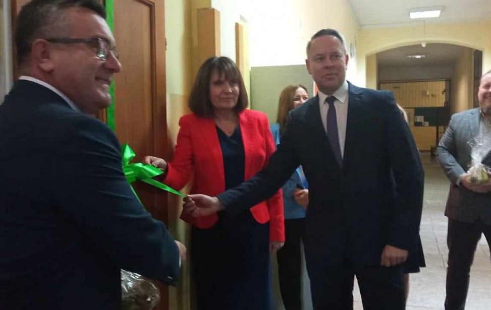 Uroczystego otwarcia EKOPRACOWNI dokonali: Mariusz Herbut Prezes Zarządu Wojewódzkiego Funduszu Ochrony Środowiska i Gospodarki Wodnej w Zielonej Górze, Ewa Łysień Dyrektor szkoły oraz Wojciech Sołtys Burmistrz Sulechowa.