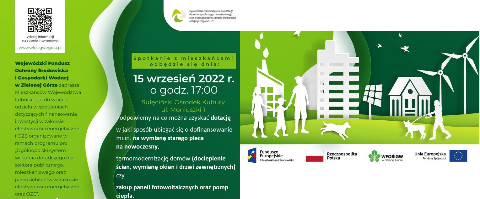 Wojewódzki Fundusz Ochrony Środowiska i Gospodarki Wodnej w Zielonej Górze serdecznie Państwa zaprasza na spotkanie dotyczące finansowania inwestycji z zakresu efektywności energetycznej i Odnawialnych Źródeł Energii