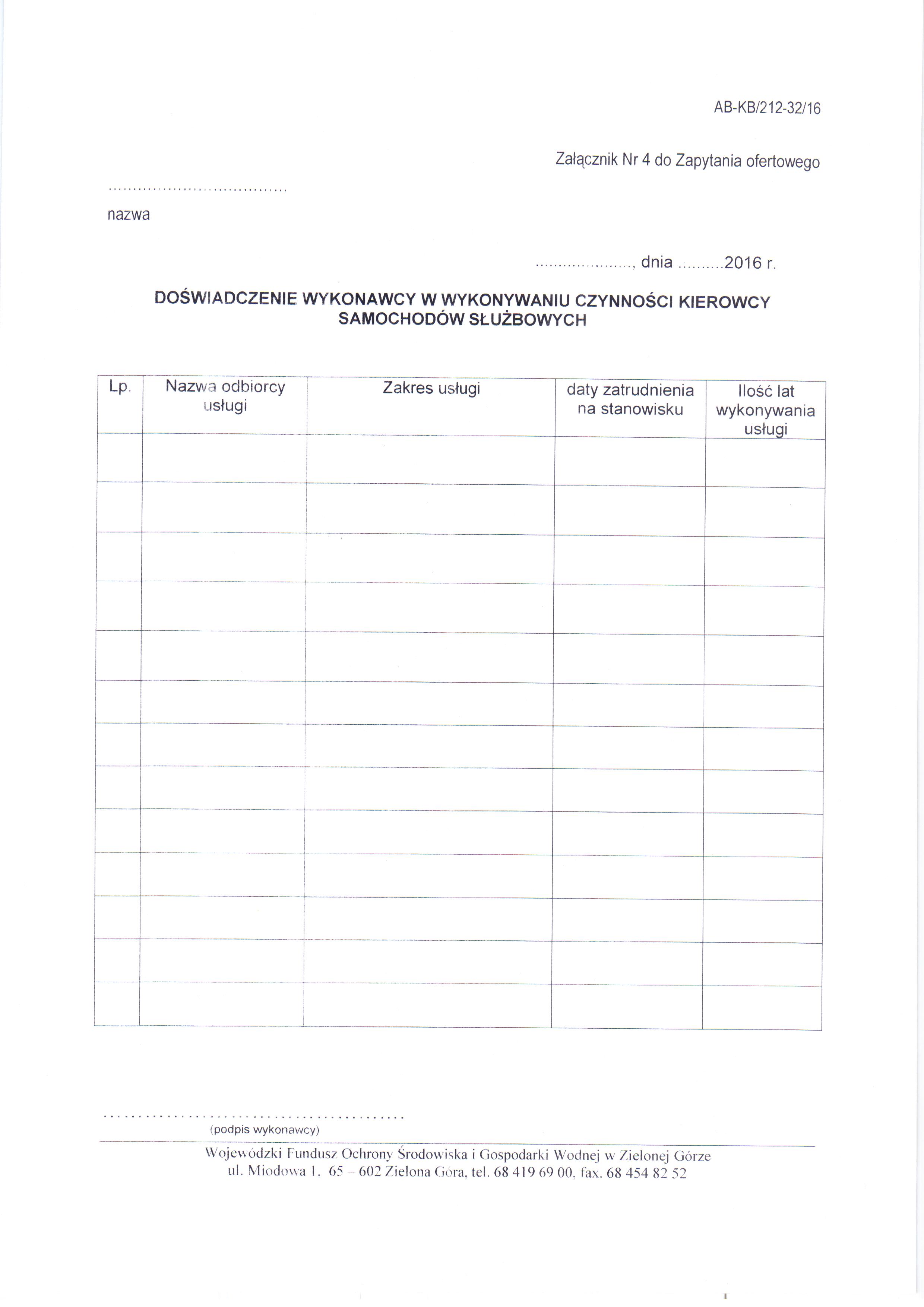 - zał. nr 4 - Doświadczenie Wykonawcy w wykonywaniu czynności kierowcy samochodów służbowych >> pobierz