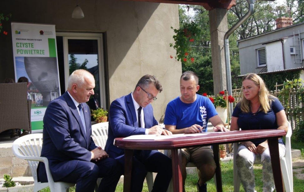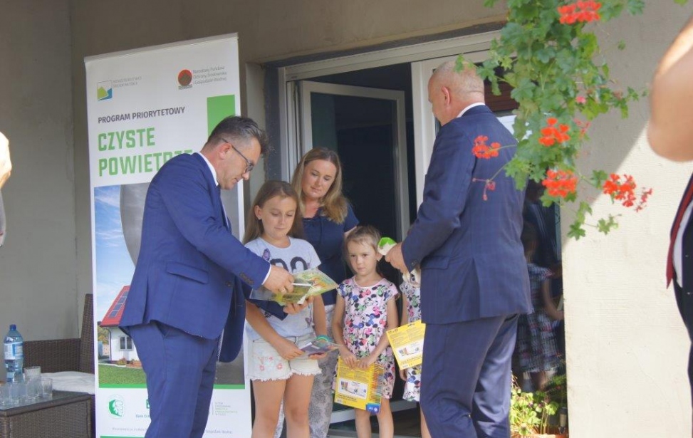 Bezzwrotne środki pomocowe z rządowego Programu Priorytetowego „Czyste Powietrze” trafiły już do ponad tysiąca beneficjentów z województwa lubuskiego. Tysięczna umowa dotacji w regionie została podpisana 28 sierpnia br. w Jasieniu, gdzie w starym, ale systematycznie modernizowanym budynku mieszkają Państwo Paweł i Magdalena Kichardowie z trójką dzieci. Dotacja, którą uzyskali z Funduszu, pozwoli im sfinansować koszty przyłącza gazowego i kupić nowy kondensacyjny kocioł na gaz w miejsce zatruwającego środowisko „kopciucha” na węgiel. Gdyby nie Program, musieliby pokryć wszystkie koszta z niewielkich swoich dochodów, a z „Czystym Powietrzem” zyskali 40% dofinansowania. Dlatego się cieszą, a umowę dotacyjną nr DC191000 z Prezesem Wojewódzkiego Funduszu Ochrony Środowiska i Gospodarki Wodnej w Zielonej Górze – Mariuszem Herbutem, podpisali u siebie „pod chmurką”, w obecności Wojewody Lubuskiego Władysława Dajczaka.