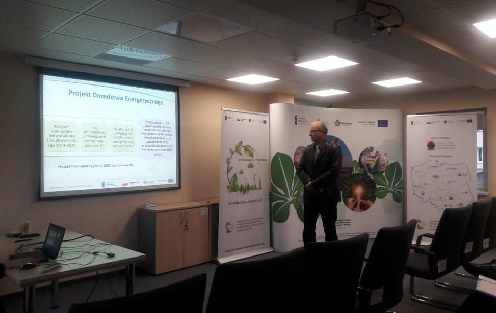 Szkolenie zostało zorganizowane przez Zespół Doradców Energetycznych w ramach projektu pn.: "Ogólnopolski system wsparcia doradczego dla sektora publicznego, mieszkaniowego oraz przedsiębiorstw w zakresie efektywności energetycznej oraz OZE"