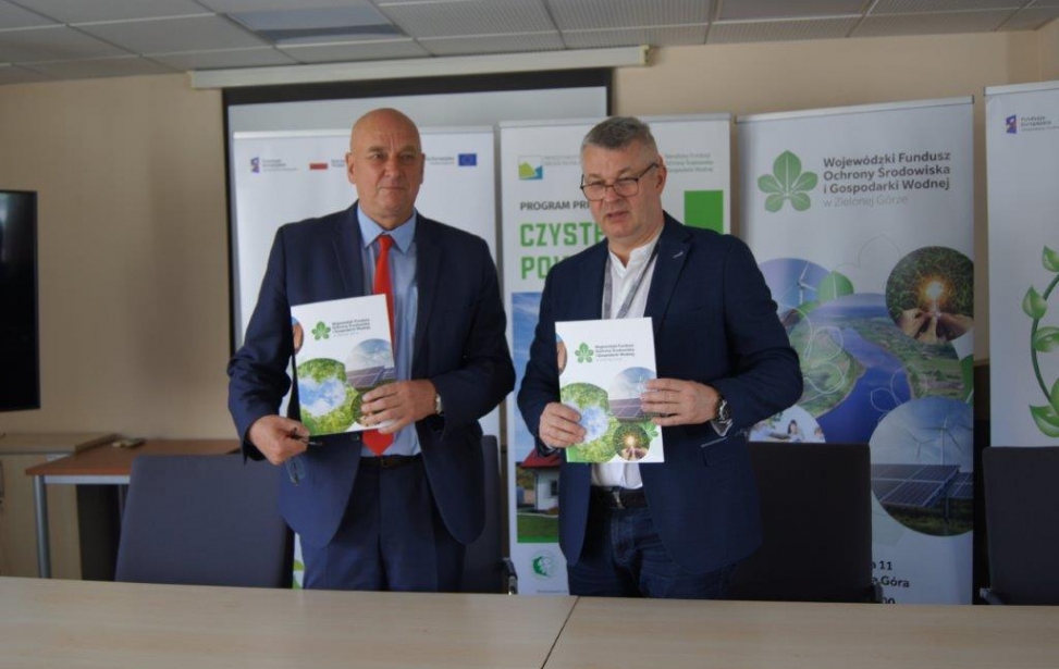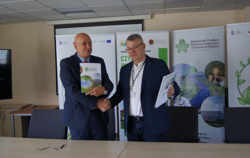 Na zdjęciu umowę dotacji podpisują: Marek Działoszyński – Prezes Zarządu Szpitala Uniwersyteckiego im. Karola Marcinkowskiego w Zielonej Górze i Ireneusz Madej - Wiceprezes WFOŚiGW w Zielonej Górze, przy kontrasygnacie Jarosława Sierackiego – Głównego Księgowego Szpitala Uniwersyteckiego im. Karola Marcinkowskiego w Zielonej Górze.