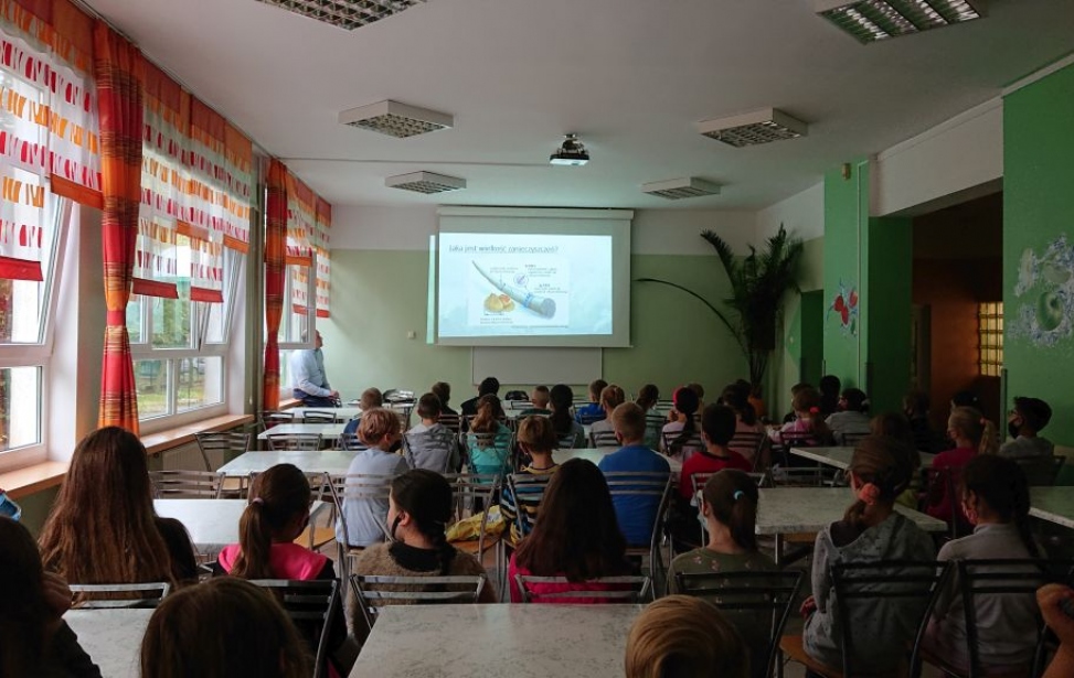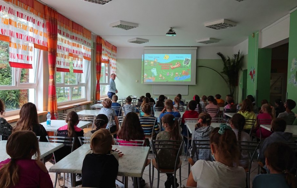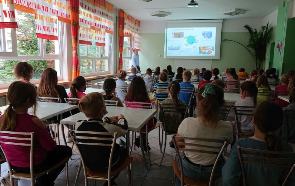 Dzisiaj Zespół doradców Energetycznych z WFOŚiGW w Zielonej Górze miał przyjemność odwiedzić uczniów dwóch czwartych klas Szkoły Podstawowej nr 1 w Zielonej Górze. Prowadzący spotkanie – Marcin Kostrzewa przybliżył uczniom zagadnienia związane m.in. z atmosferą, smogiem czy niską emisją. Opowiedział z jakimi niebezpiecznymi zjawiskami mamy do czynienia korzystając z nieefektywnych źródeł ogrzewania, jakie zagrożenia niesie spalanie śmieci oraz stosowanie do ogrzewania domów paliw niskiej jakości. W dalszej części zajęć uczniowie dowiedzieli się także w jaki sposób można zapobiegać niskiej emisji oraz czym są odnawialne źródła energii i w jaki sposób możemy je wykorzystać w naszym codziennym życiu. Tematyka spotkania cieszyła się olbrzymim zainteresowaniem wśród młodych słuchaczy, a dodatkowo większość z nich chętnie włączała się do zabaw – zagadek i quizów, wykazując się zaskakująco dużą wiedzą. Mamy nadzieję, że Eko spotkania przygotowane przez Zespól Doradców Energetycznych w Zielonej Górze przyczynią się do kształtowania świadomości ochrony środowiska naturalnego wśród uczniów oraz poszerzą umiejętności czynnego zaangażowania w rozwiązywanie problemów ekologicznych.