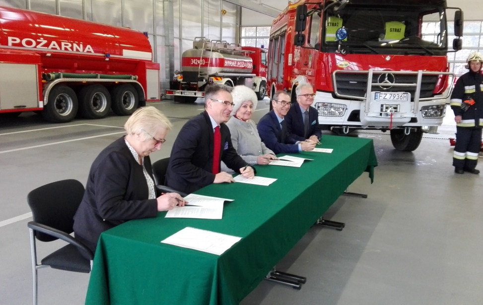 Umowę na zakup pojazdu dla OSP „Racula” podpisali: w imieniu beneficjenta: Janusz Kubicki - Prezydent Miasta Zielona Góra, Waldemar Michałowski - Dyrektor Departamentu Bezpieczeństwa i Zarządzania Kryzysowego Urzędu Miasta Zielona Góra przy kontrasygnacie Emilii Wojtuściszyn - Skarbnika Miasta, ze strony Funduszu: Jolanta Fedak - Prezes Zarządu oraz Michał Stosik - z-ca Prezesa Zarządu.