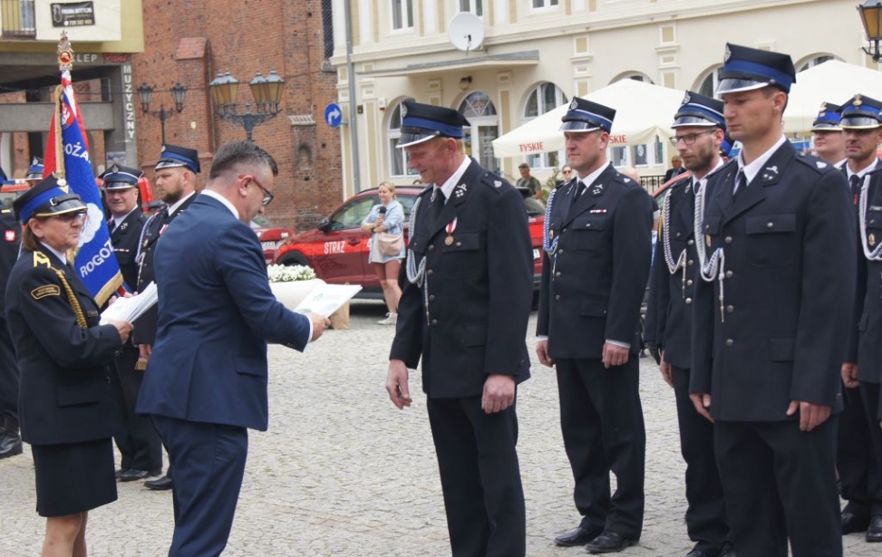 Uroczyste wręczenie decyzji o przyznaniu dofinansowania na zakup sprzętu ratowniczo – gaśniczego odbyło się przy okazji powiatowych obchodów dnia strażaka przy ratuszu w Świebodzinie.